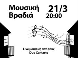 Μουσική βραδιά με τους Duo Cantarto σε τραγούδια έντεχνα, παραδοσιακά, ελληνόφωνα Κάτω Ιταλίας και άλλα...