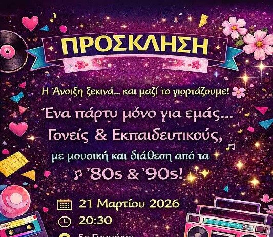 Σάββατο – 21/3/2026 Πάρτυ της Ένωσης για γονείς και εκπαιδευτικούς...