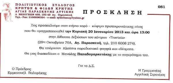 Την πρωτοχρονιάτικη πίτα κόβει η ΔΗΜ.Τ.Ο. Αγίας Παρασκευής στις 1/2