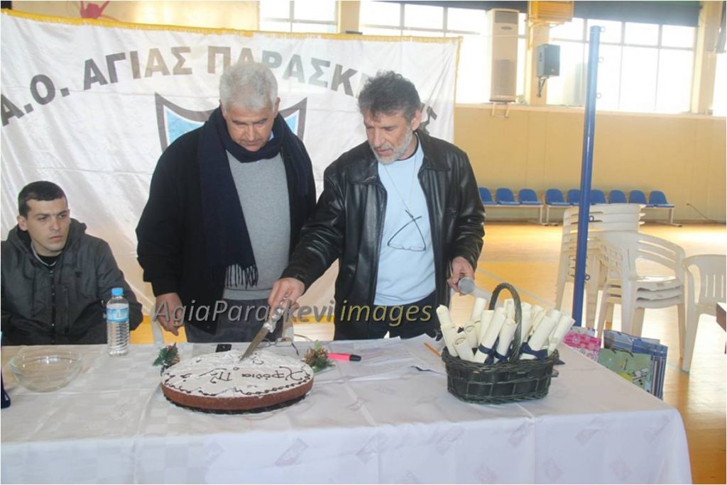 Πραγματοποιήθηκε με επιτυχία την Κυριακή 19 Φεβρουαρίου στο κλειστό δημοτικό γυμναστήριο της πόλης μας , η κοπή πίτας του Α.Ο. Αγίας Παρασκευής παρουσίας πλήθους κόσμου. Με πρωταγωνιστές τους αθλητές του συλλόγου πολλούς φίλους και γονείς των παιδιών μέσα σε ένα ζεστό οικογενειακό κλίμα ο Πρόεδρος Δημήτρης Μανιάτης, άνοιξε την εκδήλωση καλωσορίζοντας τους παρευρισκομένους.