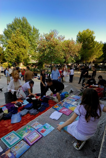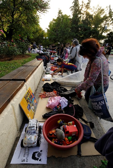 Από νωρίς τ απόγευμα αρκετοί συμπολίτες “προμήθεψαν” το παζάρι με αντικείμενα που δεν χρειάζονταν (αλλά μπορούν να χρησιμοποιηθούν) και στις 6 η ώρα οι “πάγκοι” είχαν στηθεί. Πολύ μεγάλη και θερμή η προσέλευση του κόσμου που είδε την πλατεία ν αλλάζει όψη, έφαγε, συζήτησε ή πήρε κάποια απ τα πράγματα που διατίθονταν (κυρίως ρούχα,βιβλία,παιχνίδια).