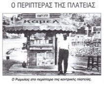 Τι να πει κανείς για τον περιπτερά μας … Θα γέμιζαν ένα βιβλίο οι ιστορίες της παλιάς πλατείας. Το τηλέφωνο του περιπτέρου ήταν και το τηλέφωνο της πιάτσας των ταξί, όπου γίνονταν οι μεγάλες πλάκες τότε με τους ταξιτζήδες και τους λεωφορειούχους, που τότε τερμάτιζαν στην Εκκλησία μπροστά τα λεωφορεία.