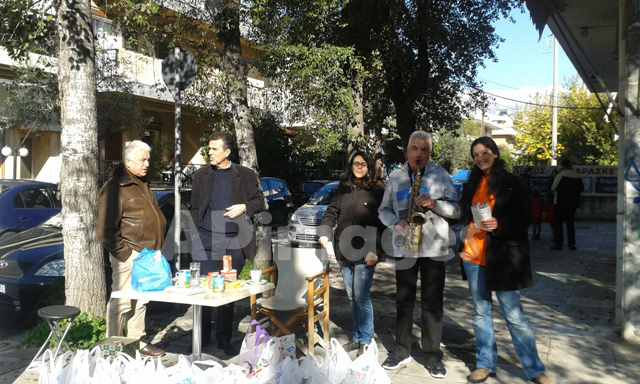Μαζί τους και ο γραμματέας του συλλόγου Πευκακίων κ. Παπουτσής, που ομόρφυνε την ατμόσφαιρα με τη μουσική του παίζοντας σαξόφωνο και κορίτσια από τις δράσεις εθελοντών.