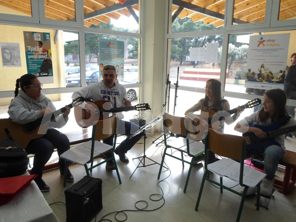 Την εκδήλωση έντυσαν μουσικά ο δάσκαλος του 9ου δημοτικού σχολείου κ. Γιάννης Μπουκουβάλας με τρεις μαθήτριες, που ομολογουμένως απέσπασαν δυνατό χειροκρότημα για το αρμονικό παίξιμο και τις γλυκές φωνές τους.