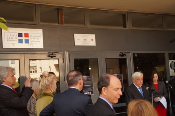 Την επιγραφή αποκάλυψαν ο Πρόεδρος της Ελληνικής Δημοκρατίας κ Προκόπης Παυλόπουλος και ο Πρέσβης της Γαλλίας στην Ελλάδα κ. Christophe Chantepy.