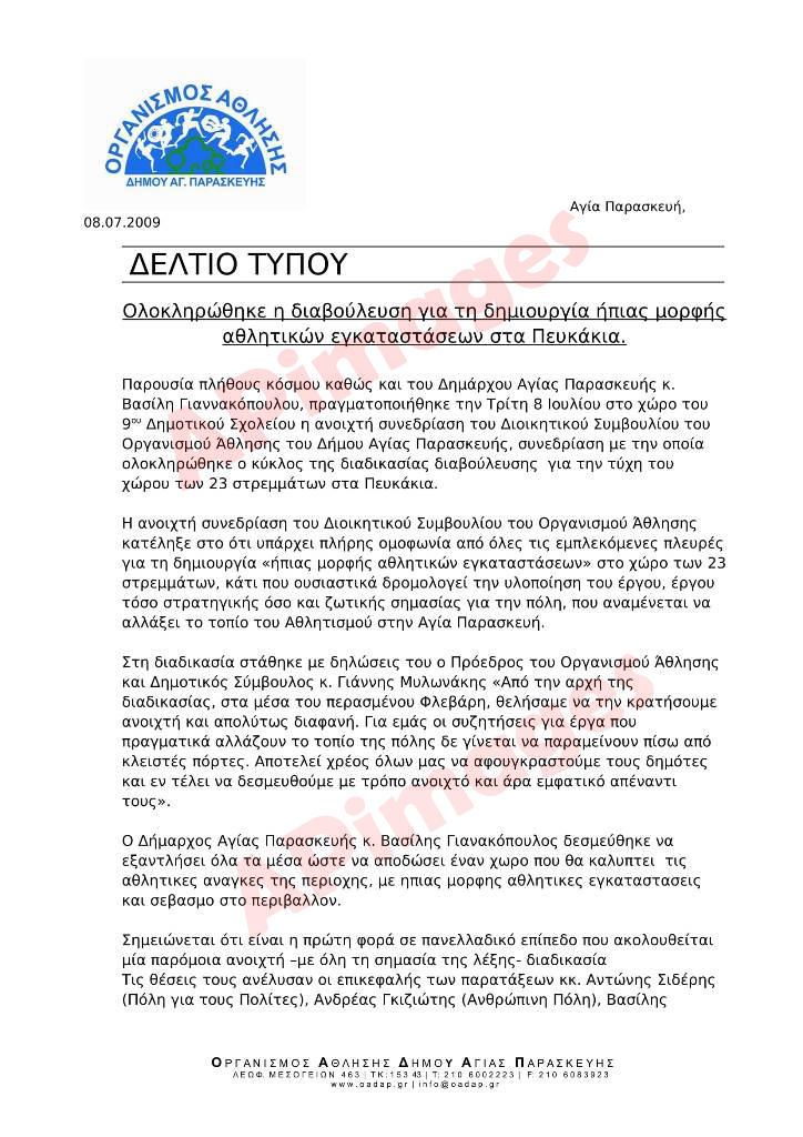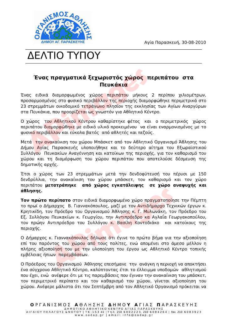 Δελτίο Τύπου ΟΑΔΑΠ για τον περιμετρικό δρόμο 30-8-2010