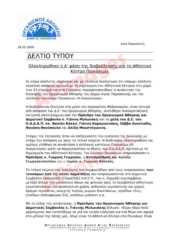 «Το αθλητικό κέντρο είναι περιουσία όλων των κατοίκων των Πευκακίων».