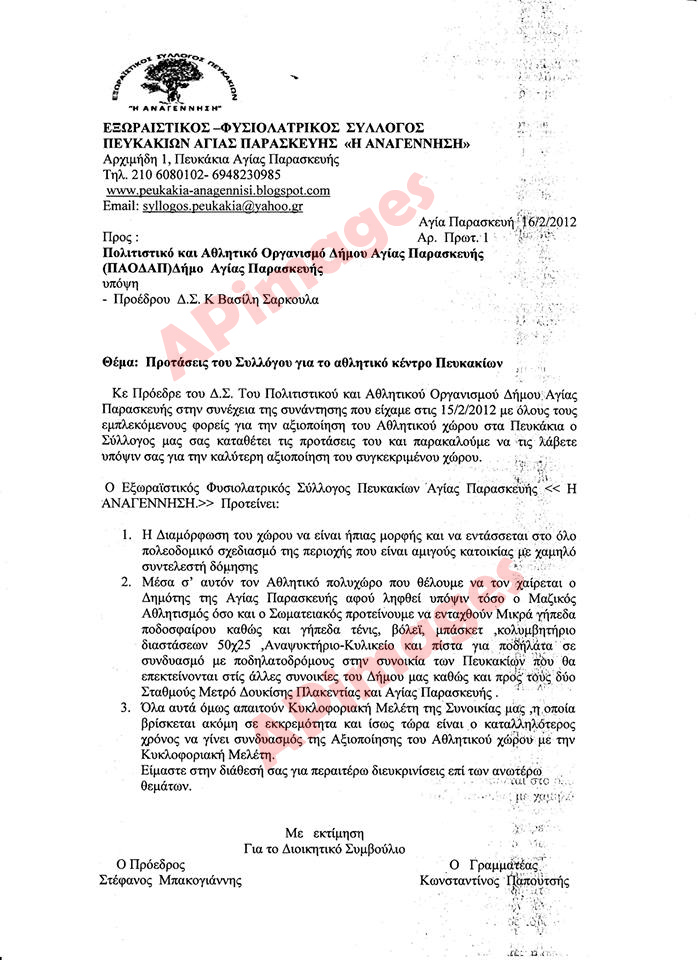 Επιστολή του Συλλόγου Πευκακίων προς τον πρόεδρο του ΠΑΟΔΑΠ κ. Βασίλη Σάρκουλα 16-2-2012