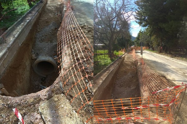 Θέμα ασφάλειας τίθεται πλέον στην περιοχή, αφού οι διανοίξεις δεν είναι πλήρως προφυλαγμένες με κίνδυνο για τους διερχόμενους και τα μικρά παιδιά.