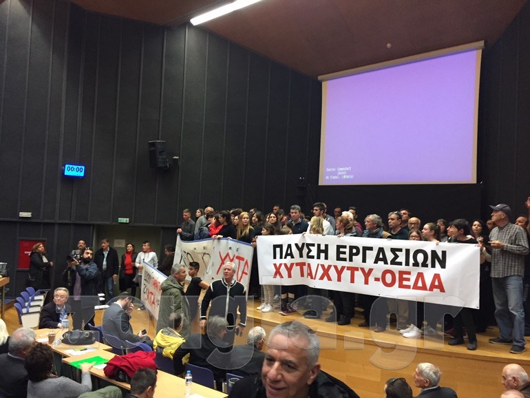 Οι οπαδοί της ΑΕΚ κατηγόρησαν τους συμβούλους ότι καθυστερούν δολίως την κατασκευή του γηπέδου στη Νέα Φιλαδέλφεια. Νωρίτερα οι διαδηλωτές, κρατώντας πανό κατά της κατασκευής ΧΥΤΑ, φώναξαν συνθήματα και τοποθέτησαν μικροφωνική εγκατάσταση από την οποία ακούγονταν οι εξαγγελίες της περιφερειάρχου, Ρένας Δούρου, όταν πριν από 3 χρόνια η ίδια υποστήριζε ότι η κατασκευή του αποτελεί περιβαλλοντικό έγκλημα και ότι δεν θα πρέπει να επιτραπεί.