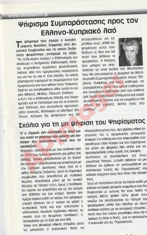 Τον πρώην Δήμαρχο Βασίλη Ζορμπά είχαμε την τιμή να τον γνωρίσουμε προσωπικά ως ιστοσελίδα και την ευκαιρία να συνεργαστούμε με τον ίδιο και τα στελέχη του. Πραγματικά είναι ένας άνθρωπος που δεν συνηθίζει τα “φιλικά χτυπήματα στην πλάτη”. Μιλάει ευθέως και λέει αυτό που σκέφτεται. Πολλές φορές αυτό σε έναν πολιτικό αποβαίνει σε μειονέκτημα. Η πολιτική και δημοτική πορεία του πρώην Δημάρχου συνεχίζεται και θα ξαναδοκιμάσει τις δυνάμεις της παράταξής του στις προσεχείς εκλογές του 2019.