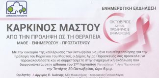 Ενημερωτική εκδήλωση για τον Καρκίνο του Μαστού διοργανώνει ο Δήμος Αγίας...
