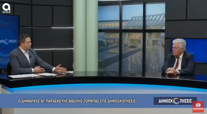 Σήμερα ο Δήμαρχος Βασίλης Ζορμπάς στο “Αttika TV” και στον δημοσιογράφο Γιώργο Λαιμό στις 16.30μμ θα μιλήσει για θέματα τις επικαιρότητος και του Δήμου