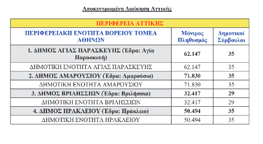 Ειδικότερα, στο παρακάτω έγγραφο θα δείτε πόσοι δημοτικοί σύμβουλοι εκλέγονται ανά δήμο – δημοτική ενότητα, μετά τις αυτοδιοικητικές εκλογές του Οκτωβρίου, με βάση τα επικαιροποιημένα πληθυσμιακά στοιχεία