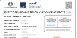 Τέλη κυκλοφορίας 2024: Αναρτήθηκαν τα ειδοποιητήρια στην πλατφόρμα της ΑΑΔΕ