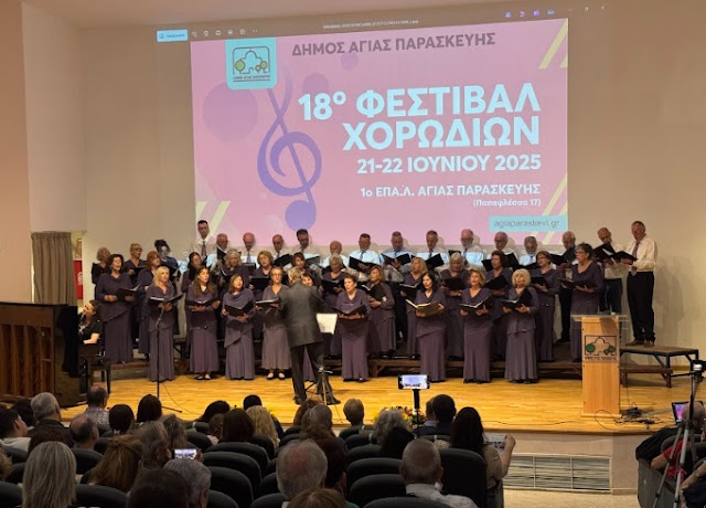 Με ιδιαίτερη επιτυχία ολοκληρώθηκε το 18ο Φεστιβάλ Χορωδιών του Δήμου Αγίας Παρασκευής, το οποίο πραγματοποιήθηκε στις 21 και 22 Ιουνίου στο 1ο ΕΠΑΛ Αγίας Παρασκευής.