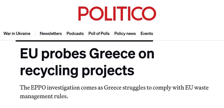 Δημοσίευμα του Politico αναφέρεται σε νέο σκάνδαλο με πιθανή κατάχρηση ευρωπαϊκών κονδυλίων από την Ελλάδα. που προορίζονταν για την ανακύκλωση.