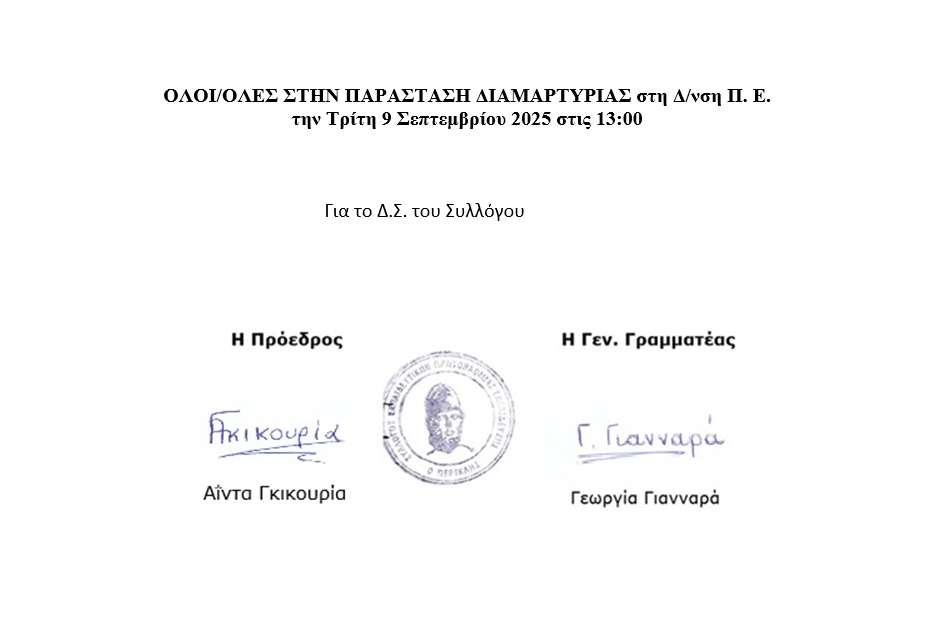 ΟΛΟΙ/ΟΛΕΣ ΣΤΗΝ ΠΑΡΑΣΤΑΣΗ ΔΙΑΜΑΡΤΥΡΙΑΣ ΤΩΝ ΣΥΛΛΟΓΩΝ ΕΚΠ/ΚΩΝ Π. Ε.