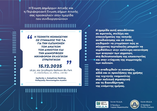 Ένωση Δημάρχων – ΠΕΔΑ σε ημερίδα για την Τεχνητή Νοημοσύνη