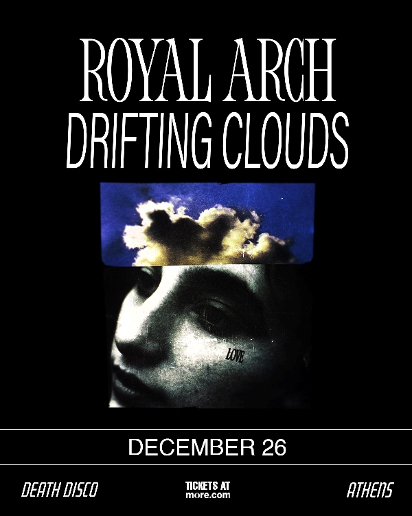Tην Παρασκευή 26 Δεκεμβρίου, δυο από τις σύγχρονες κιθαριστικές μπάντες της εναλλακτικής σκηνής συναντιούνται στην σκηνή του Death Disco. Πέρα απ’ τα όρια της γλώσσας και του χρόνου, οι Royal Arch και οι Drifting Clouds μοιράζονται την ίδια αγάπη για μπάντες και καλλιτεχνά που καθόρισαν γενιές πριν από αυτούς χωρίς να ξεχνάνε ούτε στιγμή την εποχή που ζούνε. Χωρίς καμία διάθεση για νοσταλγία επιστρέφουν στην Αθήνα για να γιορτάσουν τους πρώτους τους δίσκους, όλα όσα ήρθαν και όλα όσα θα έρθουν.