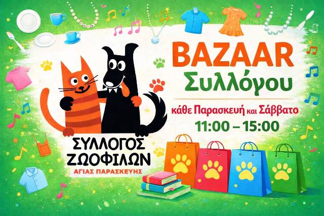 Σύλλογος Ζωόφιλων Αγίας Παρασκευής – Bazaar κάθε Σάββατο & Κυριακή 11.00πμ με 15.00μμ