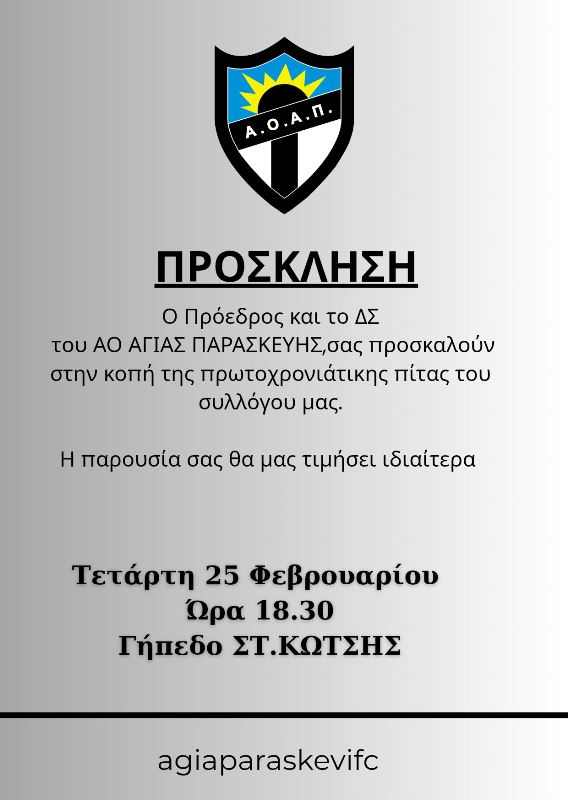 του ,σας προσκαλούν στην κοπή της πρωτοχρονιάτικης πίτας του συλλόγου μας.