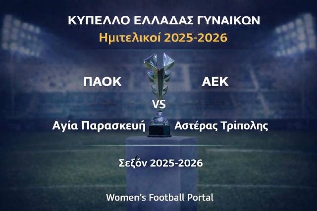 Πραγματοποιήθηκε στα γραφεία της Ελληνικής Ποδοσφαιρικής Ομοσπονδίας η κλήρωση για την ημιτελική φάση του Κυπέλλου Ελλάδας Γυναικών για την αγωνιστική περίοδο 2025-2026.