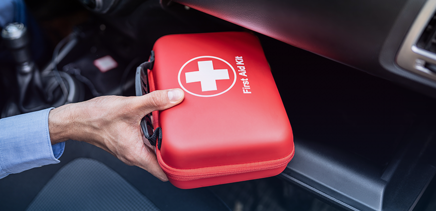 Ανάμεσά τους περιλαμβάνονται κουβέρτα διάσωσης ισοθερμική με συγκεκριμένες διαστάσεις, λευκοπλάστης, τραυμοπλαστ, επιδέσμους, επιθέμα εγκαυμάτων και πληγών, ψαλίδι πρώτων βοηθειών, γάντια μιας χρήσης, υγρά μαντιλάκια καθαρισμού δέρματος, ιατρική μάσκα προσώπου και οδηγίες πρώτων βοηθειών.
