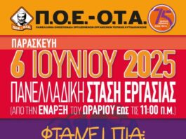 Την Παρασκευή θα πραγματοποιηθεί συγκέντρωση της ΠΟΕ-ΟΤΑ στις 11:00 το πρωί έξω από τα γραφεία της Ομοσπονδίας (Καρόλου 24-Πλατεία Καραϊσκάκη) και θα ακολουθήσει πορεία διαμαρτυρίας προς το υπουργείο Εσωτερικών (Βασ. Σοφίας 15) με επιδίωξη τη συνάντηση με την πολιτική ηγεσία.