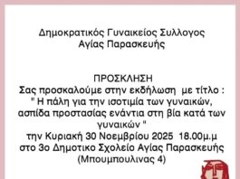 Εκδήλωση Δημοκρατικού Γυναικείου Συλλόγου Αγίας Παρασκευής