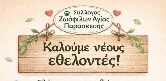 Ο Σύλλογος Ζωόφιλων Αγίας Παρασκευής, εκφράζει τις θερμές του ευχαριστίες σε...