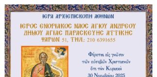 Πρόγραμμα πανηγύρεως Ι.Ν Αγίου Ανδρέου δήμου Αγίας Παρασκευής 29&30/11