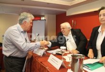 Βασίλης Ζορμπάς, σε εγκάρδια χειραψία με τον πρόεδρο της Π.Ε.Δ.Α. Νίκο Σαράντη