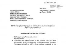 "Με την υπ’ αριθμ. 466/2014 ομόφωνη απόφαση του Δημοτικού Συμβουλίου, η οποία αναρτήθηκε στο Πρόγραμμα «ΔΙΑΥΓΕΙΑ», εγκρίθηκε η αναφορά-καταγγελία στον αρμόδιο Οικονομικό Εισαγγελέα και...